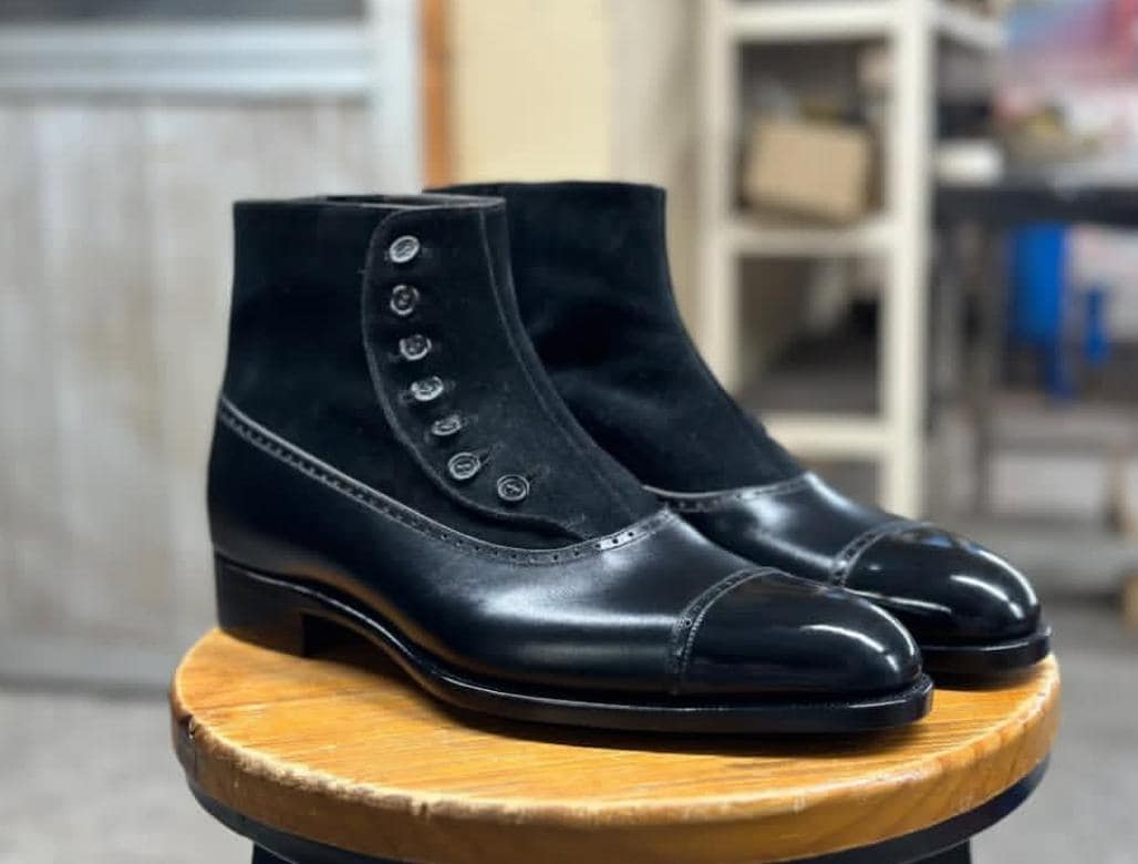 Black Button Boots Leather Goodyear Welted Button Boots Italian Leather Handmade Boots Unisex Boots