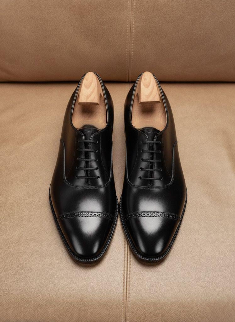 Black Colour Men's Oxford Shoes Captoe Handmade Shoes Men's Casual Italian Shoes