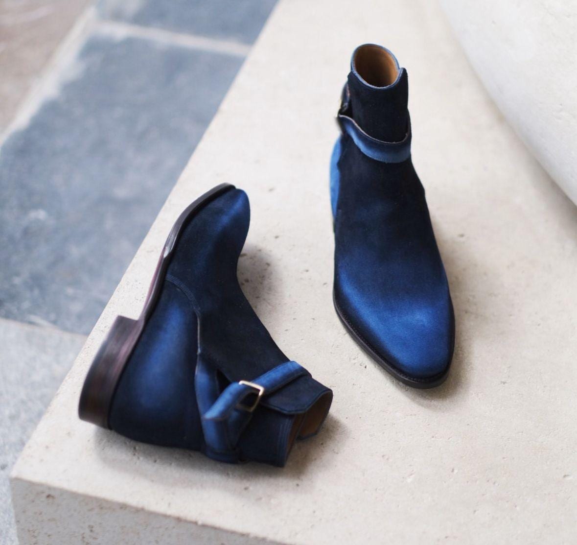Blue Suede Leather Chukka Boots Italian Leather Handmade Boots Unisex Patina Boots