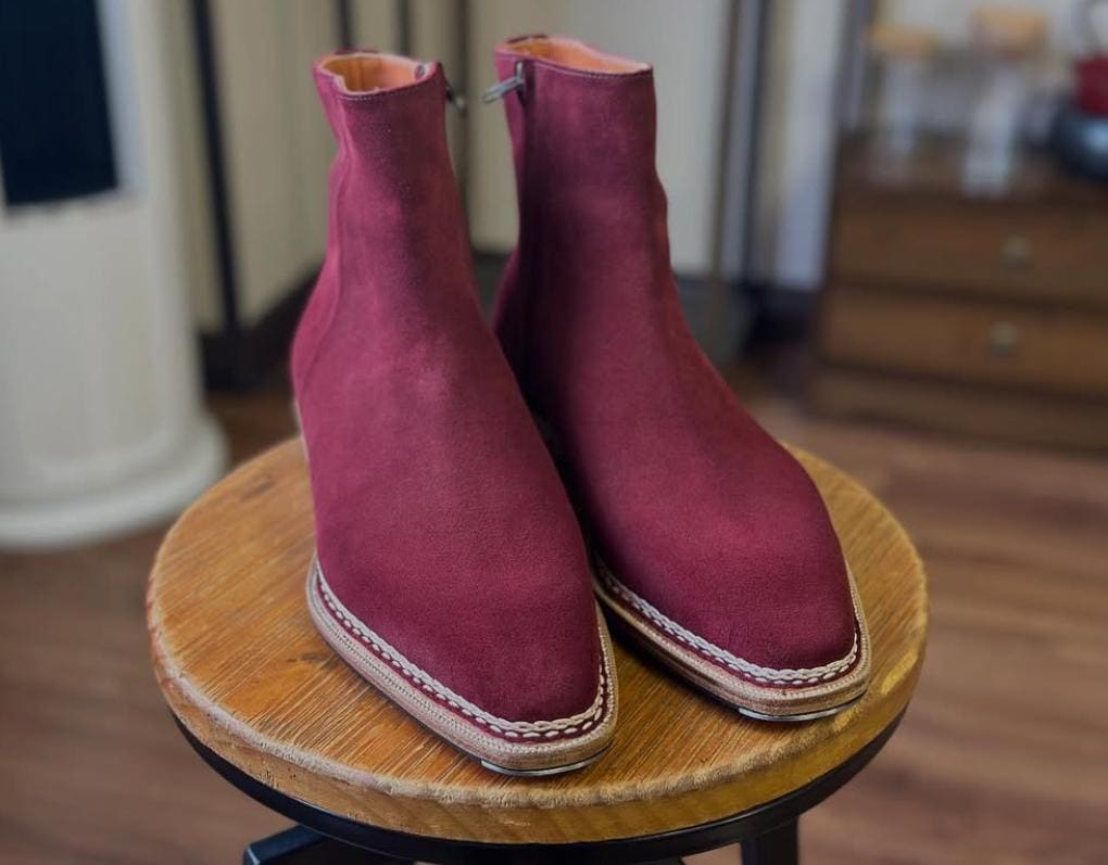 Burgundy Suede Chelsea Norwegian Stitch Boots Leather Goodyear Welted Zipper Boots Italian Leather Handmade Boots Unisex Boots