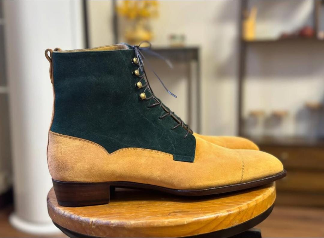 Green And Beige Suede Leather Boots Goodyear Welted Boots Italian Leather Handmade Boots Unisex Boots