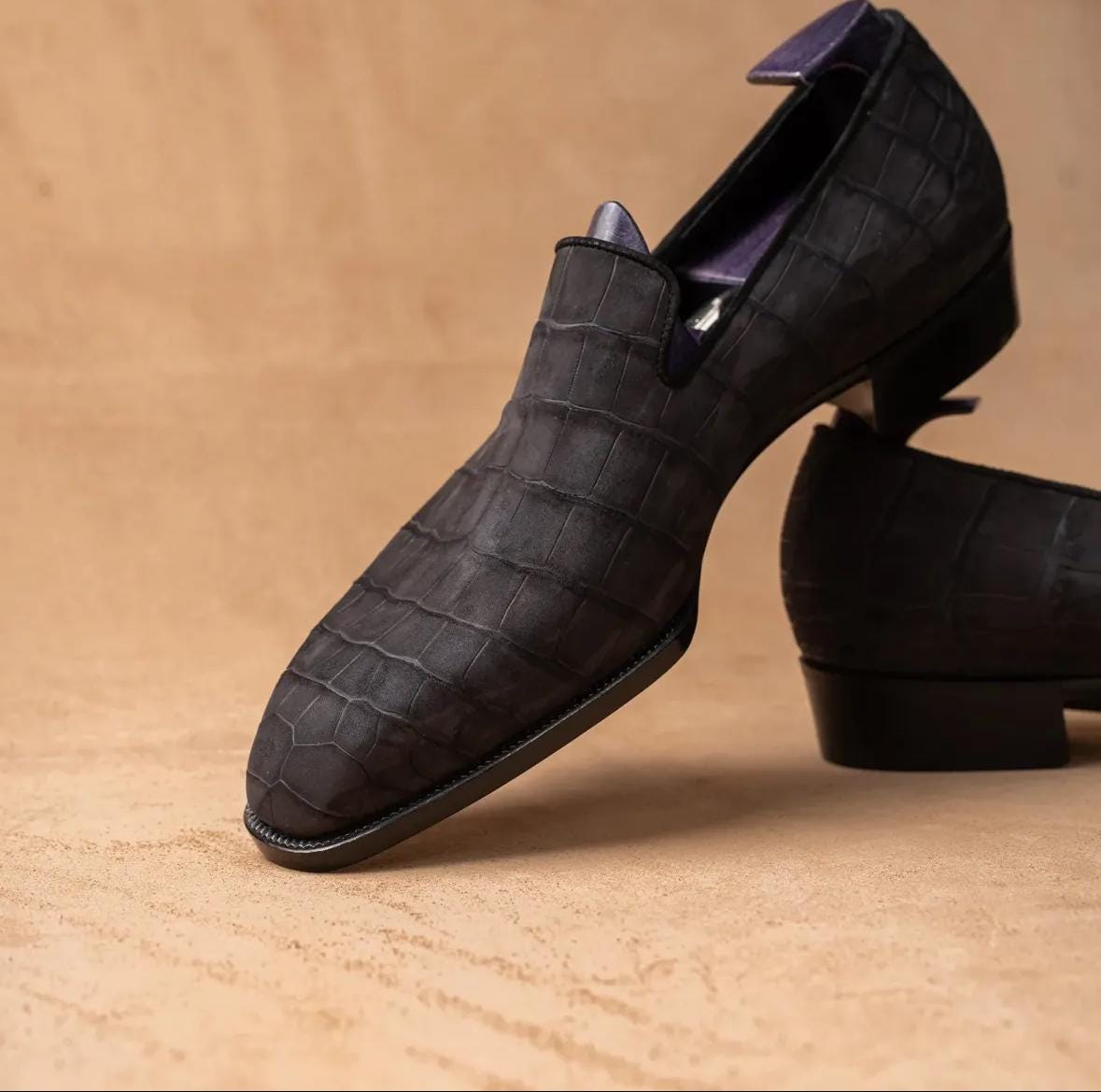 Handmade Black Suede Leather Loafers: Italian Bespoke Shoes