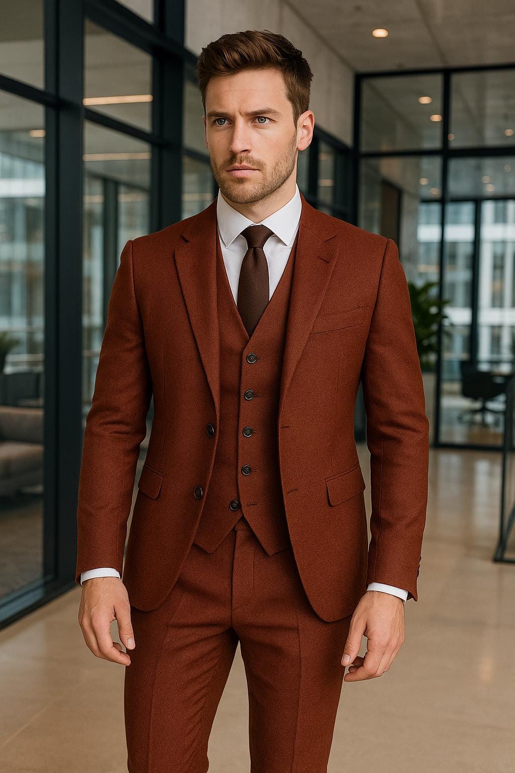 Formal Rust Orange 3-Piece Tuxedo Men’s Suit – Wedding, Groom, or Party Wear – Customized Tailored Fit – Modern Elegant Men’s Dress