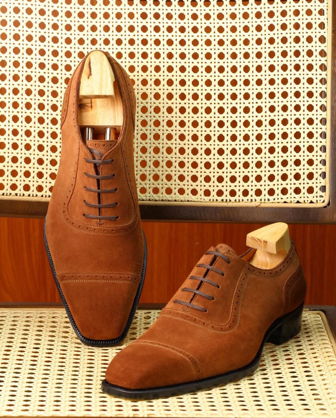 Men's Suede Leather Oxford Captoe Shoes Bespoke Handmade Leather Shoes Italian Classic Shoes